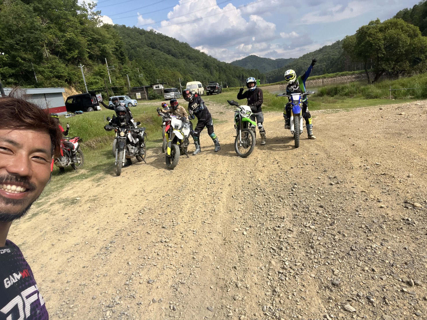 大きなバイクで大きな砕石場をのんびりオフロードバイクツアー。大きなバイクは助け合わないと起こせない時もあるけどみんなで走れば『自分が転んでも相手が転んでもお互い様で助け合い』の精神でトコトコ走ります( ◠‿◠ )