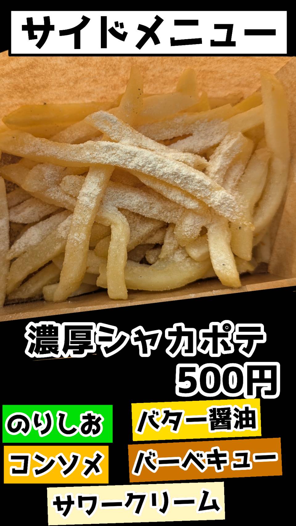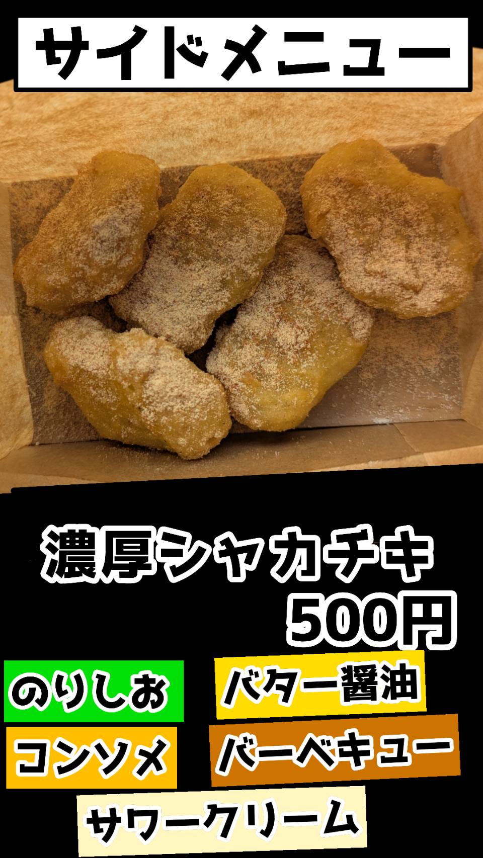 じゃがバター、ポテト、唐揚げ、たこ焼き