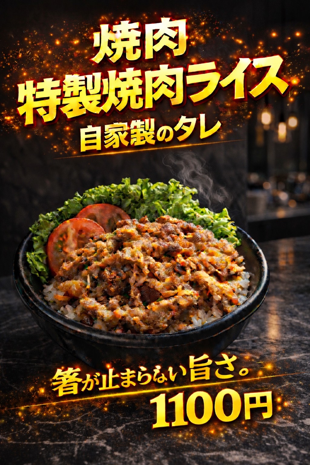 ・自家製のタレを使用しお肉もこだわりお米も使用する前の日に精米に掛けて美味しい焼肉ライスを作ってます!